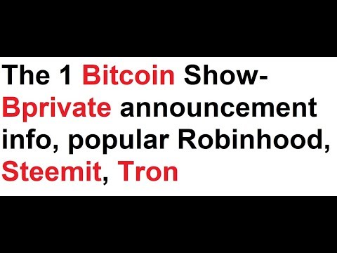 The 1 Bitcoin Show- Bprivate announcement info, popular Robinhood, Steemit, Tron